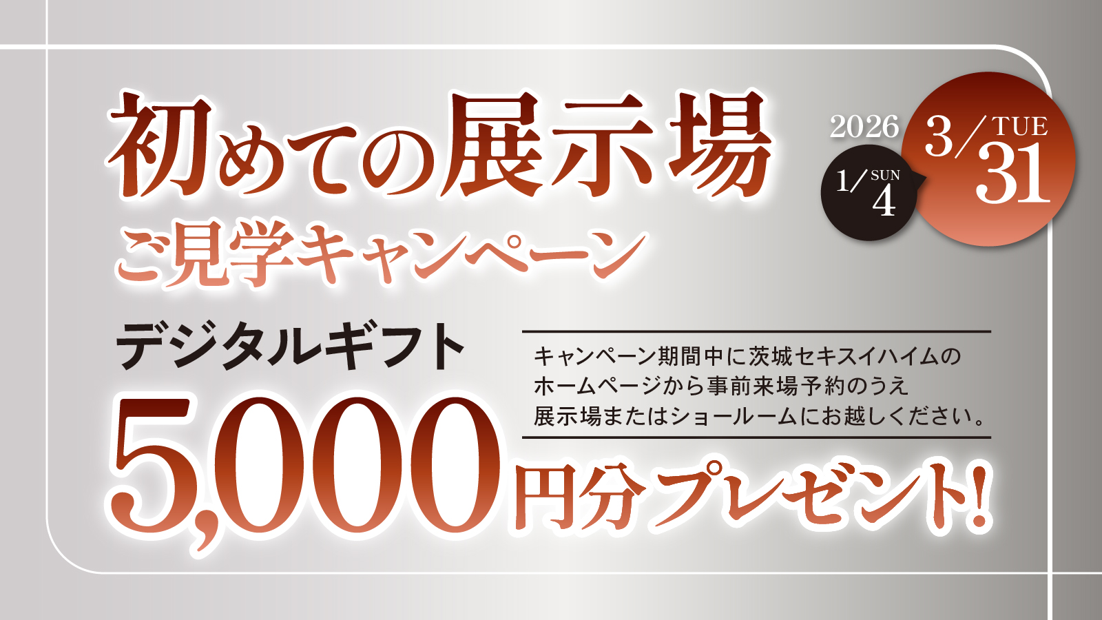茨城セキスイハイムのホームページからご予約のうえ、展示場へおこしいただくと「デジタルギフト5,000円分」プレゼントいたします♪