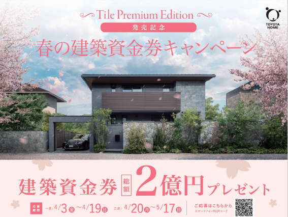 トヨタホームでは、春の特別企画として「建築資金券キャンペーン」を開催中です。