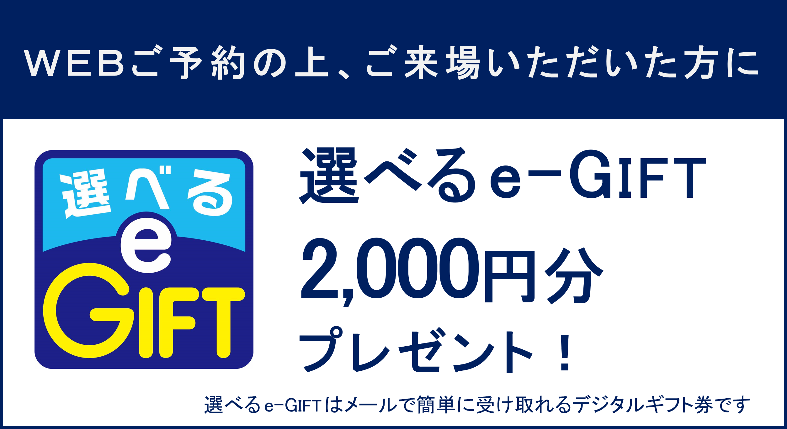 WEB予約の上ご来場いただいた方へ、選べるe-GIFTをプレゼント!