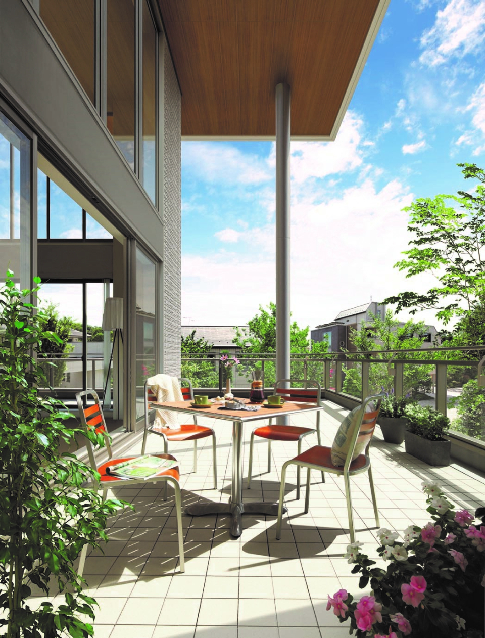・スローリビング:戸外とシームレスにつながり、軒下の中間領域を介して自然を住まいの空間に取り込む、「スローリビング」。