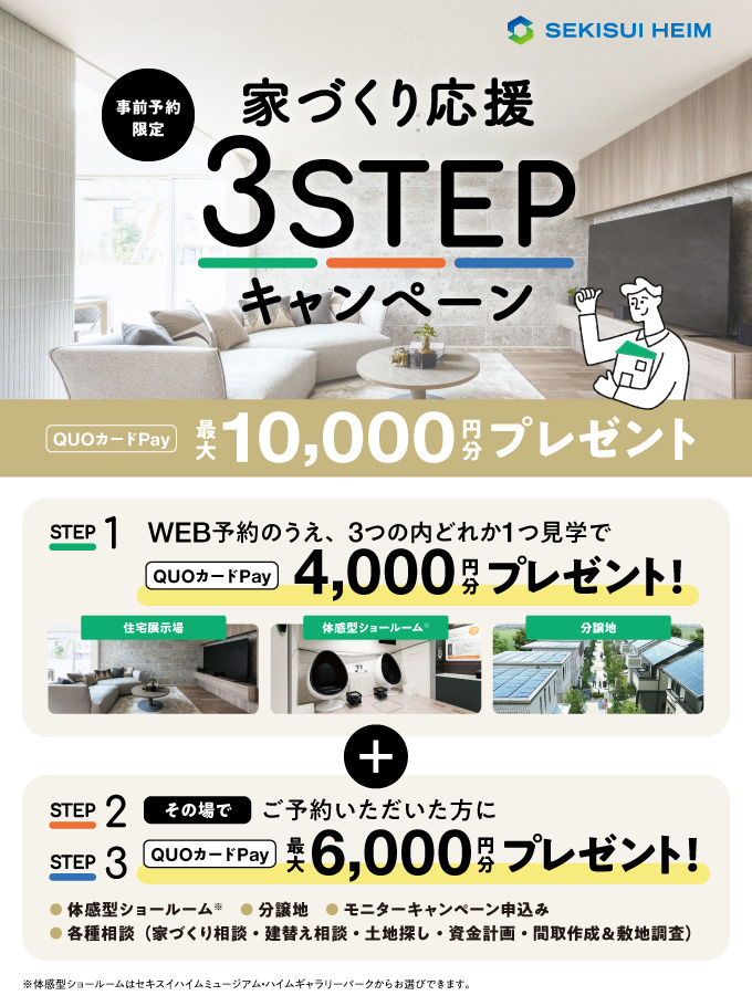 事前予約限定 家づくり応援 3STEPキャンペーン QUOカードPay 最大10,000円分プレゼント