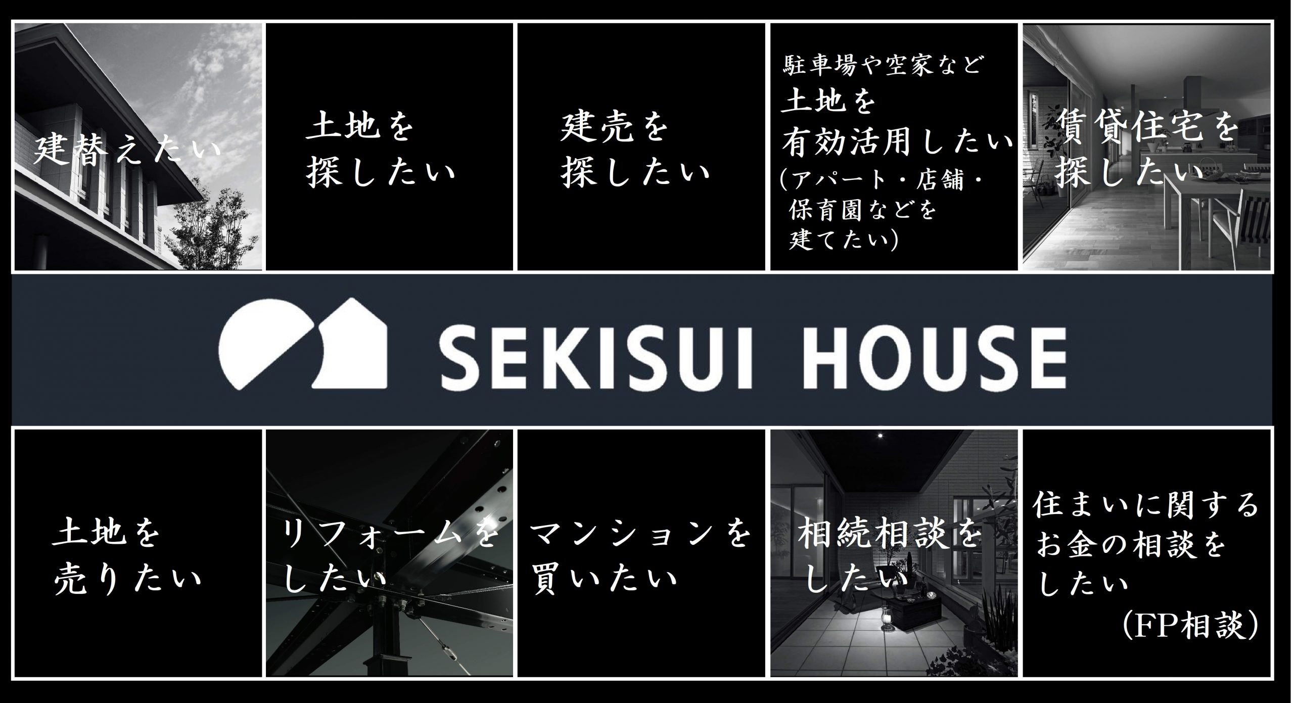 建替え、土地探し、賃貸、併用住宅など住まいに関わることは全国建築実績No.1の積水ハウスにお任せください!経験豊富なスタッフがお客様のご要望に沿う、理想の住まいづくりのお手伝いをさせていただきます。