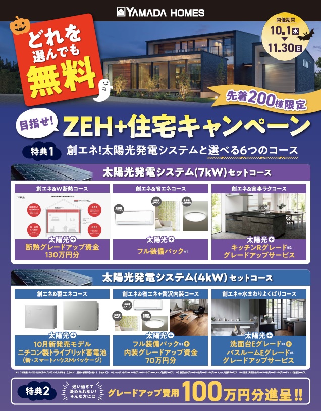 『どれを選んでも無料!!』ZEH+住宅キャンペーン!