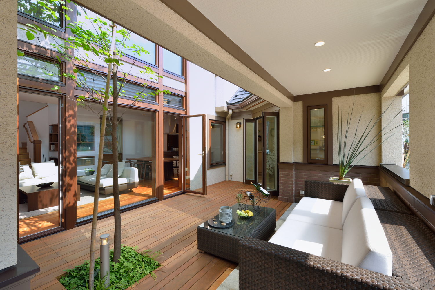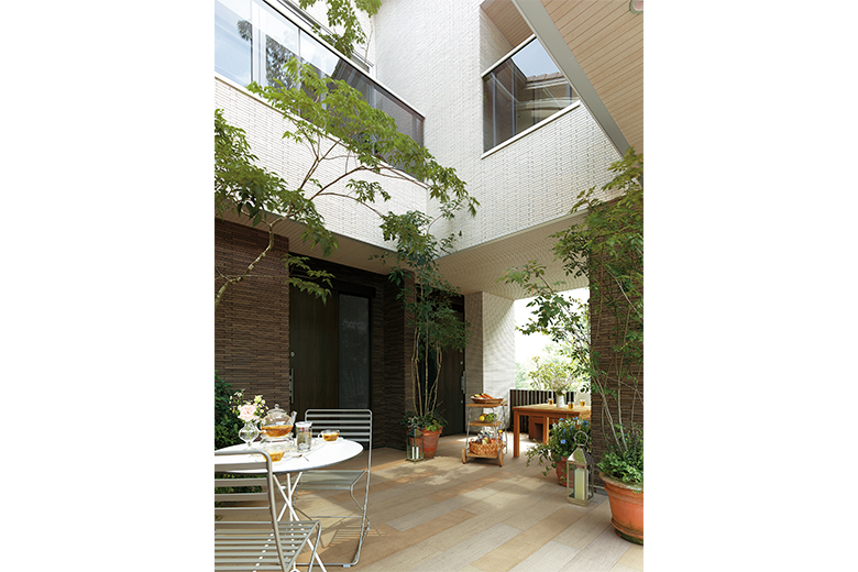 カフェテラスのようなゆったりとしたコミュニケーションポーチで、ご家族や友人と楽しい時間を過ごせます。