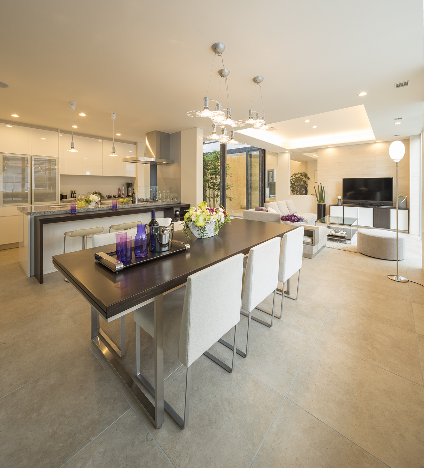 リビングとつながったダイニング・キッチンは、家族が自然に顔を合わせ会話が弾むように設計されたスペースです。