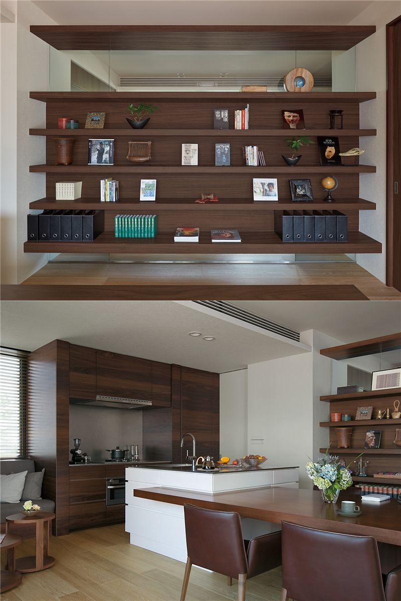 親世帯はウォルナット造作とオーク挽板でシックに。上質なアイランドキッチンがワンランク上の時間を演出。